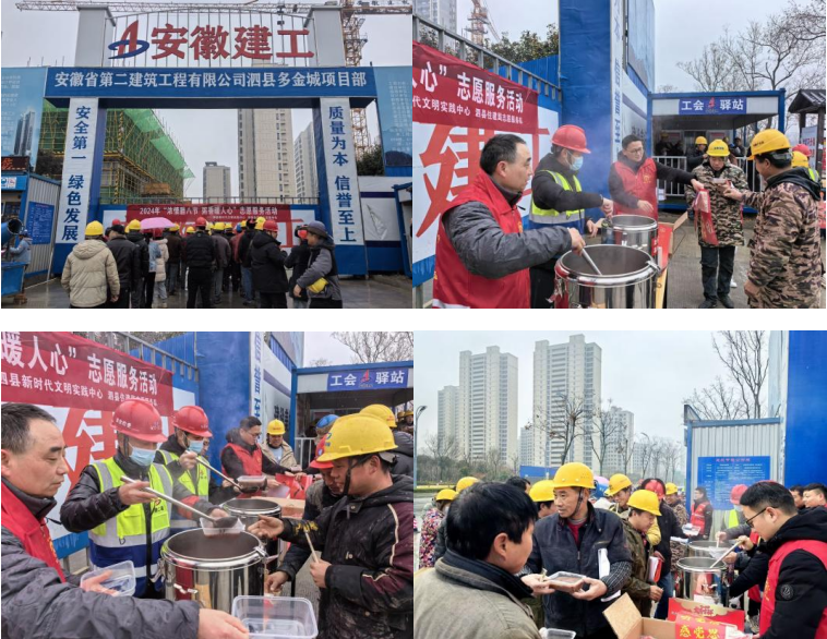 1月18日,第一公司泗縣多金城項目部聯(lián)合主管部門開展了“濃情臘八節(jié) 粥香暖人心”公益志愿服務活動,項目部連續(xù)三年開展此類公益活動,每年的臘八前夕項目管理人員都會提前準備糯米、小米、紅豆、蓮子等制作食材,用兩個多小時精心熬制兩大桶熱騰騰的臘八粥,為堅守在崗位上的工人送上溫暖和關(guān)懷。