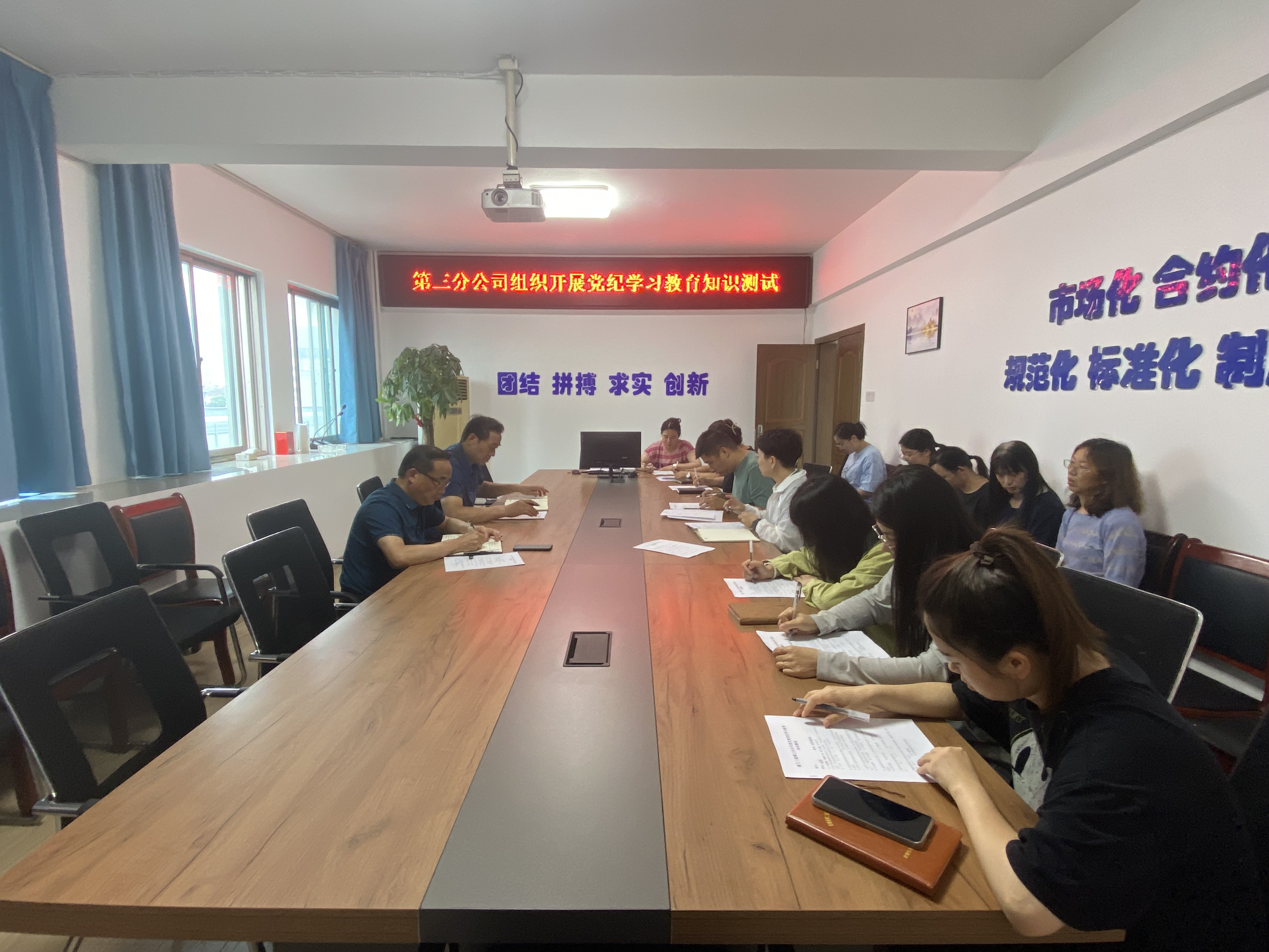 為持續(xù)加強(qiáng)黨紀(jì)學(xué)習(xí)教育,推動黨紀(jì)學(xué)習(xí)教育走深走實,6月26日上午,第三分公司黨支部召開黨紀(jì)學(xué)習(xí)教育學(xué)習(xí)會暨黨紀(jì)學(xué)習(xí)教育知識測試,機(jī)關(guān)全體人員參加會議,所屬項目部同步學(xué)習(xí)。