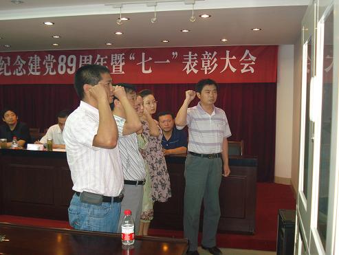 新黨員在表彰大會(huì)上進(jìn)行入黨宣誓