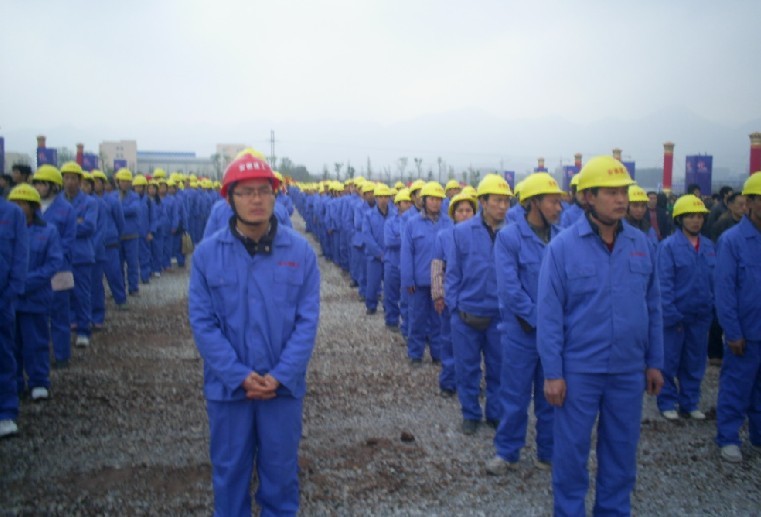 圖為參加開工儀式的安徽建工施工隊(duì)伍