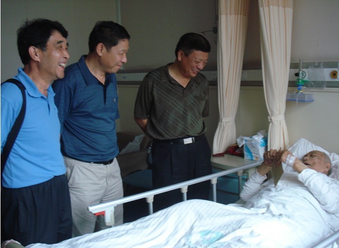 圖為公司黨委書(shū)記朱治淮(右一)、工會(huì)主席李林(右二)在省立醫(yī)院看望老干部劉弘毅