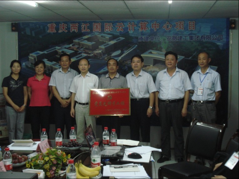 8月15日上午,集團公司總經(jīng)理、副董事長、黨委副書記趙時運,副董事長、黨委副書記李長斌,紀(jì)委書記、工會主席牛曙東,黨委工作部主任胡建英,工會女工委主任胡愛紅,辦公室副主任余志剛一行,在省二建公司總經(jīng)理戴樹明、副總經(jīng)理劉國良等陪同下,冒著40℃ 的高溫到重慶兩江國際云計算中心項目檢查指導(dǎo)工作,并為該項目“黨員先鋒號工程”授牌。