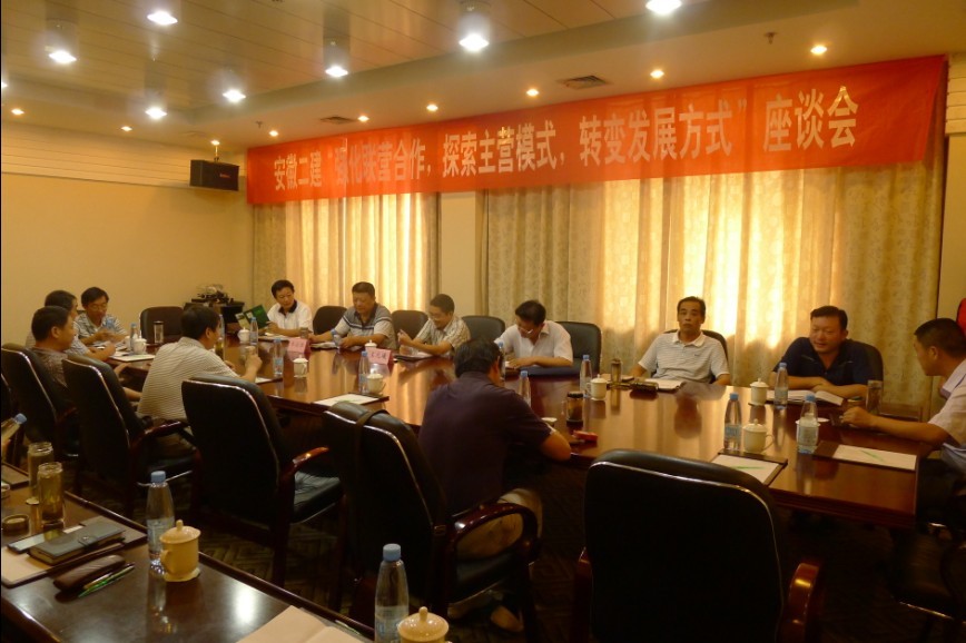 8月25日,安徽二建公司就“如何強(qiáng)化聯(lián)營(yíng)合作管理,探索主營(yíng)業(yè)務(wù)發(fā)展模式,轉(zhuǎn)變發(fā)展方式”在六安分公司召開(kāi)了專(zhuān)題座談會(huì)。公司領(lǐng)導(dǎo)班子成員、總經(jīng)理助理、副總工程師、副總經(jīng)濟(jì)師等人員參加會(huì)議,集團(tuán)公司黨委委員、副總經(jīng)理王元曦親臨會(huì)議并做重要講話。