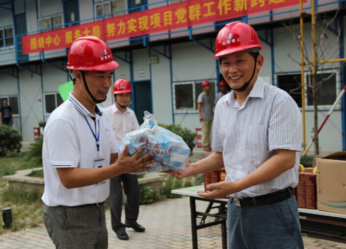 牛曙東副書記一行還為奮戰(zhàn)在建科院項(xiàng)目的一線職工送上了毛巾、綠豆、白糖、涼茶、風(fēng)油精、十滴水等防暑降溫用品和藥品,并叮囑高溫季節(jié)要合理安排作息時(shí)間,確保施工現(xiàn)場(chǎng)作業(yè)安全,防止出現(xiàn)高溫中暑情況,要站在安全發(fā)展的高度,切實(shí)將防暑降溫工作安排好、落實(shí)好,保障職工安全度夏。