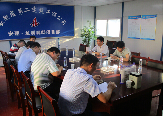 在隨后召開的現(xiàn)場工作會上,王厚良副總經(jīng)理對安建·龍溪山莊工程質(zhì)量和目前所取得的成績給予了充分肯定,對項(xiàng)目近期工作提出四點(diǎn)要求,一是要高標(biāo)準(zhǔn)、嚴(yán)要求,抓好現(xiàn)場安全文明施工和標(biāo)準(zhǔn)化施工,提高安徽建工集團(tuán)在當(dāng)?shù)氐挠绊懥?;二是要高度重視安全質(zhì)量,確保安全無事故,質(zhì)量無缺陷;三是要強(qiáng)化目標(biāo)責(zé)任制,充分調(diào)動全體員工的積極性;四是要加強(qiáng)人才培養(yǎng),對青年人,工作上要交真本領(lǐng),業(yè)務(wù)上要經(jīng)常開展技能培訓(xùn)。