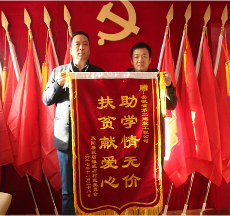 近日,安徽二建三分公司收到了鳳陽縣武店鎮(zhèn)武店村民委員會送來的錦旗,感謝安徽二建對當(dāng)?shù)匾幻毨Т髮W(xué)生的資助。