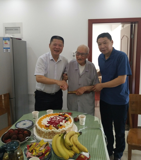 6月15日上午,公司黨委書記劉賢奇在工會主席李林、后勤綜合服務部支部書記、主管離休工作人員的陪同下,來到居住在高新區(qū)的離休老干部百歲老人李輝家中,送上生日壽桃蛋糕、慰問金和代表公司黨委對老人的生日祝福,祝愿老人壽比南山,福如東海。李輝,男,1919年7月1日出生,江蘇鹽城人,1945年4月1日參加新四軍抗日隊伍,1946年4月加入中國共產(chǎn)黨,出生入死63載,槍林彈雨,對黨忠誠,積極工作,勤勤懇懇,對企業(yè)發(fā)展建設作出應有貢獻。如今老人精神矍鑠,生活安逸,心情愉悅。劉賢奇一邊與老人真摯地交談,了解老人的身體健康狀況、長壽秘籍;一邊與老人分享中國改革開放翻天覆的變化,安徽二建66載的風雨歷程,目前企業(yè)已走向正常發(fā)展軌道,企業(yè)正處于轉(zhuǎn)型發(fā)展的關鍵時期,發(fā)展前景越來越好,希望老人事事順心,天天快樂,益壽延年。老人感謝劉書記和離休辦同志在自己百歲生日時給予的祝福,感謝公司黨委關心呵護,表示要堅定信念,永遠聽黨話,跟黨走,祝愿企業(yè)再創(chuàng)新的輝煌。