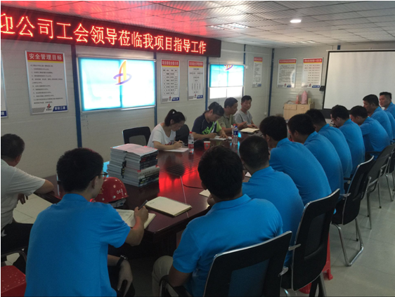 李主席一行到達(dá)施工現(xiàn)場(chǎng),參觀了工地,仔細(xì)詢(xún)問(wèn)了項(xiàng)目概況以及目前施工進(jìn)度、質(zhì)量、安全等方面情況,聽(tīng)取了項(xiàng)目工會(huì)主席創(chuàng)建“工人先鋒號(hào)”匯報(bào),對(duì)項(xiàng)目班子以“一流工作、一流服務(wù)、一流業(yè)績(jī)、一流團(tuán)隊(duì)”為目標(biāo)的創(chuàng)建活動(dòng)給予了肯定,鼓勵(lì)項(xiàng)目部繼續(xù)完善,爭(zhēng)創(chuàng)集團(tuán)“工人先鋒號(hào)”工程。