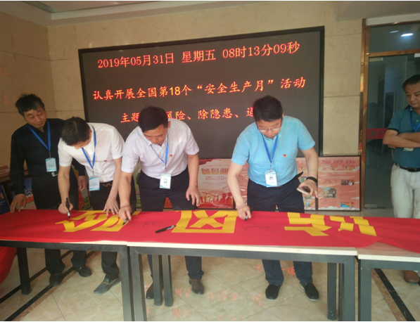 2019年5月31日,公司安全管理部、工會在公司大院舉行了全國第十八個“安全生產(chǎn)月”活動啟動儀式,公司機關(guān)全體職工參加??偨?jīng)理陸勤斌作啟動講話,指出安全生產(chǎn)工作的重要性和“安全生產(chǎn)月”活動的意義。分管安全副總經(jīng)理葉和永帶領(lǐng)全體職工進行了安全宣誓,隨后,在印有“安全生產(chǎn)月”主題“防風險 除隱患 遏事故”的橫幅上簽名。