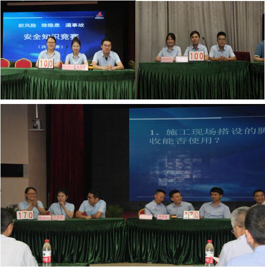 在2019年全國(guó)第18個(gè)“安全生產(chǎn)月”期間,為更好地促進(jìn)集團(tuán)公司廣大職工深入學(xué)習(xí)掌握行業(yè)安全生產(chǎn)相關(guān)法律法規(guī)及標(biāo)準(zhǔn)規(guī)范,認(rèn)真貫徹落實(shí)“安全第一、預(yù)防為主、綜合治理”方針,強(qiáng)化“安全為天 生命至上”理念,6月12日下午,在集團(tuán)公司三樓會(huì)議室隆重舉行“防風(fēng)險(xiǎn)、除隱患、遏事故”主題安全知識(shí)競(jìng)賽活動(dòng),共25支代表隊(duì)參賽,公司安全總監(jiān)曹建,總經(jīng)理助理、工會(huì)副主席蒯家江帶隊(duì)參賽。
