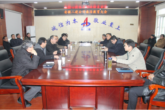 1月14日,安徽二建公司召開廉潔教育大會,公司領(lǐng)導(dǎo)班子成員以及中層管理人員參加會議,黨委副書記、紀(jì)委書記仇多維主持會議。