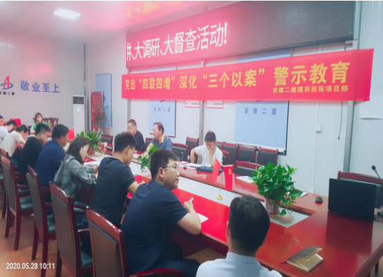 5月28日,公司財務(wù)總監(jiān)項新元一行深入四分公司合肥麗豐璞羽西苑項目部開展以“三個以案”警示教育大宣講、大調(diào)研、大督查活動。項新元一行首先聽取了項目部關(guān)于開展“三個以案”的工作匯報。隨后,調(diào)研組帶領(lǐng)大家學(xué)習(xí)了安徽建工控股黨委關(guān)于深化“三個以案”警示教育大宣講和關(guān)于“工程建設(shè)領(lǐng)域廉潔風(fēng)險防控清單”內(nèi)容,同時進行了問卷調(diào)查,對項目關(guān)鍵崗位人員進行了談話。最后,項新元重申了建工控股紀(jì)委書記宋志華5月25日在該項目給公司中層干部提出的幾點要求,并對項目部提出了三點建議。