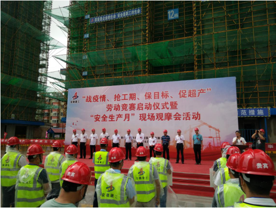6月18日,安徽二建公司在淮北國金華府(紫麟苑)項目舉行“戰(zhàn)疫情、搶工期、保目標、促超產”勞動競賽啟動儀式及安全生產月系列宣傳教育活動。公司領導,工會、黨委工作部、工程管理部、安全管理部、技術質量部部門負責人,所屬各單位主要領導、分管安全副經(jīng)理、安全科長,項目經(jīng)理及安管人員共二百余人參加,淮北市監(jiān)管局及建設單位相關領導應邀參加了活動。