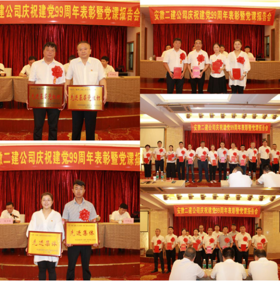 為隆重慶祝中國共產黨成立99周年,進一步加強基層黨組織建設和黨員隊伍建設,6月30日上午,安徽二建公司黨委召開慶祝建黨99周年表彰暨黨課報告會。公司領導、機關全體黨員、所屬單位領導班子成員(黨員)、受表彰的先進基層黨組織代表、優(yōu)秀共產黨員、優(yōu)秀黨務工作者、新冠肺炎疫情防控工作先進集體和先進個人參加會議。會議由公司黨委副書記、紀委書記仇多維主持。