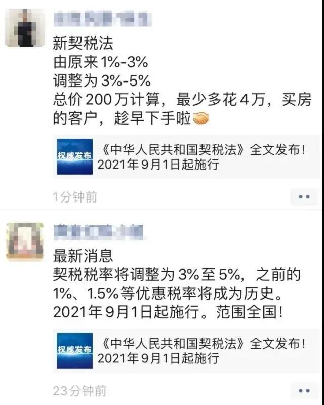 一時(shí)間“房價(jià)要漲,契稅要漲,買房要趁早”的消息在朋友圈廣泛流傳,甚至有一部分房產(chǎn)中介開始借此炒作買房恐慌。