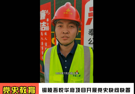 為迎接建黨一百周年,扎實(shí)開展好黨史學(xué)習(xí)教育活動,三分公司銅陵吾悅?cè)A府項(xiàng)目黨支部自五月份以來組織了形式多樣的活動。其中,氛圍最好、參與度最高的當(dāng)屬黨史知識快問快答活動。通過隨機(jī)提問形式檢查員工黨史學(xué)習(xí)教育成果,從而激勵員工將黨史知識學(xué)習(xí)好、總結(jié)好、發(fā)揚(yáng)好。問答活動中,員工們都能快速回答出黨史學(xué)習(xí)教育的總體要求:“學(xué)史明理、學(xué)史增信、學(xué)史崇德、學(xué)史力行”?;顒蝇F(xiàn)場,員工們激烈角逐,現(xiàn)場氛圍緊張而又活潑。本次快問快答活動掀起全員學(xué)習(xí)黨史知識熱潮。