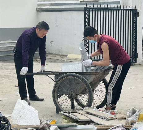 4月20日下午,方圓勞務(wù)組織職工清理公司會議室、食堂項目建筑垃圾。