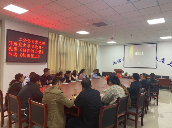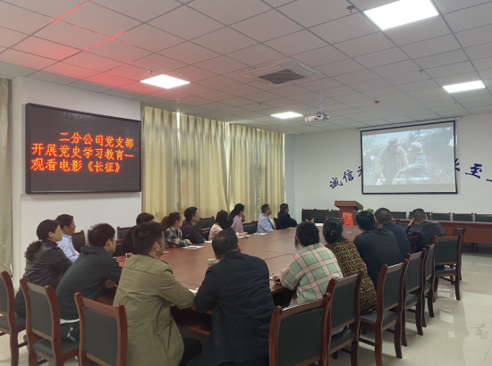 為認(rèn)真貫徹落實(shí)習(xí)近平總書記在中央黨史學(xué)習(xí)教育動(dòng)員大會(huì)上的重要講話精神,進(jìn)一步深入貫徹公司黨委關(guān)于開展黨史學(xué)習(xí)教育的文件精神。4月16日,二分公司黨支部開展黨史學(xué)習(xí)教育活動(dòng),組織黨員和干部職工觀看電影《長征》及紀(jì)錄片《信仰的力量》節(jié)選《祖國至上》。