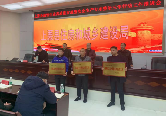 3月9日上午,江西上栗頂峰首府項(xiàng)目在上栗縣“建筑行業(yè)高質(zhì)量發(fā)展暨建筑施工安全生產(chǎn)專(zhuān)項(xiàng)整治三年行動(dòng)工作推進(jìn)會(huì)”上被授予2020年度上栗縣“建筑工程質(zhì)量安全標(biāo)準(zhǔn)化示范工地”稱(chēng)號(hào)。
