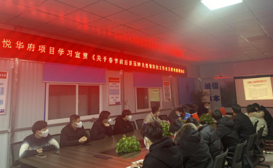 近日,銅陵吾悅?cè)A府項目組織學(xué)習(xí)【關(guān)于切實做好2021年“兩節(jié)”期間新冠肺炎疫情防控工作的通知】和【關(guān)于春節(jié)前后新冠肺炎疫情防控工作有關(guān)要求的通知】,根據(jù)文件精神安排部署春節(jié)前后新冠肺炎疫情防控工作,做到早安排早準備,確保本項目在春節(jié)前后無疫情發(fā)生。
