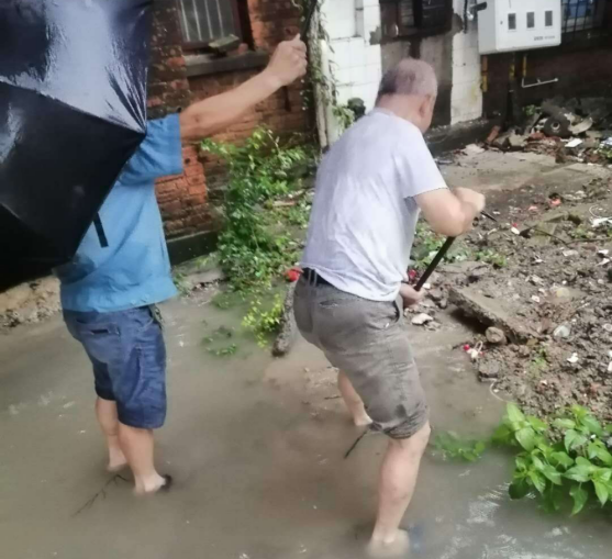 汛情就是命令,搶險就是責任。后勤黨員干部全體人員緊急行動。一是立即召開防汛救災搶險工作緊急會議,總經(jīng)理助理蒯家江要求大家統(tǒng)一思想、提高站位、壓實責任、聽從指揮,加強隱患排查,勇于擔當、不怕吃苦,第一時間發(fā)現(xiàn)險情報告并進行處置,確保轄區(qū)內(nèi)住戶的生命財產(chǎn)安全。二是成立后勤黨支部防汛救災搶險突擊小組。主任書記分別任正副組長,并對防汛救災搶險工作做了分工和工作安排。三是立即啟動預案,根據(jù)汛情需要科學安排搶險救援任務、防汛物資準備。其次整合后勤維修班人員沖在一線對老舊房區(qū)域地面進行排澇排污,清除垃圾和廢棄物。要求全體員工從18日起進入24小時緊急待命狀態(tài),保持手機暢通,隨時準備投入到防汛救災搶險的工作中去。四是加強公司轄區(qū)內(nèi)老舊平房區(qū)域的巡查檢視力度,包干劃片作業(yè),責任到人,后勤辦負責人負責總體調(diào)度協(xié)調(diào),與轄區(qū)政府、街道、社區(qū)溝通對接。五是加強對各處內(nèi)澇地點進行排水,疏通管道,積極配合轄區(qū)街道做好防汛救災搶險工作。同時對公司生活小區(qū)存在安全隱患的住戶,進行引導疏散,截至18日上午10時,14、15棟平房20戶住家已經(jīng)全部安全疏散。