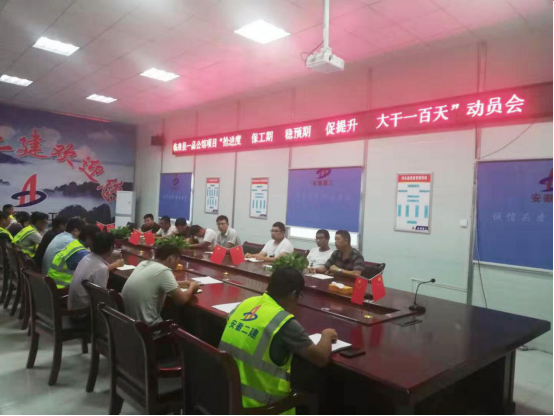 2019年9月5日,為積極響應(yīng)公司“大干100天”勞動(dòng)競(jìng)賽活動(dòng)號(hào)召,激發(fā)項(xiàng)目參建隊(duì)伍的積極性和能動(dòng)性,進(jìn)一步推進(jìn)生產(chǎn)進(jìn)度,四分公司臨泉一品公館項(xiàng)目部及時(shí)召開(kāi)動(dòng)員大會(huì),以“搶進(jìn)度、保工期、穩(wěn)預(yù)期、促提升,大干一百天”為口號(hào),競(jìng)賽活動(dòng)全面拉開(kāi)序幕。
