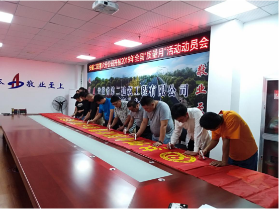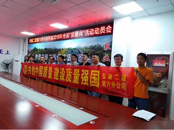 為認(rèn)真落實(shí)安徽建工集團(tuán)股份有限公司關(guān)于開展2019年“質(zhì)量月”活動的通知,9月3日,第六分公司召開2019年“質(zhì)量月”活動專題會進(jìn)行宣貫,組織職工進(jìn)行橫幅簽名活動,以“共創(chuàng)中國質(zhì)量 建設(shè)質(zhì)量強(qiáng)國”為主題,大力營造“人人重視高質(zhì)量,人人創(chuàng)造高質(zhì)量,人人享受高質(zhì)量”的良好氛圍,進(jìn)一步規(guī)范質(zhì)量安全行為,提高質(zhì)量安全管理水平,全面提升項(xiàng)目管理水平,要求項(xiàng)目部按照“質(zhì)量月”活動內(nèi)容,結(jié)合項(xiàng)目實(shí)際,精心安排、周密部署,以“質(zhì)量月”活動為契機(jī),加大項(xiàng)目質(zhì)量宣傳力度,進(jìn)一步提高全員質(zhì)量意識,開展質(zhì)量示范創(chuàng)建,創(chuàng)建公司質(zhì)量品牌,牢固樹立全心全意為用戶提供優(yōu)質(zhì)服務(wù)的安徽建工一流企業(yè)現(xiàn)象。