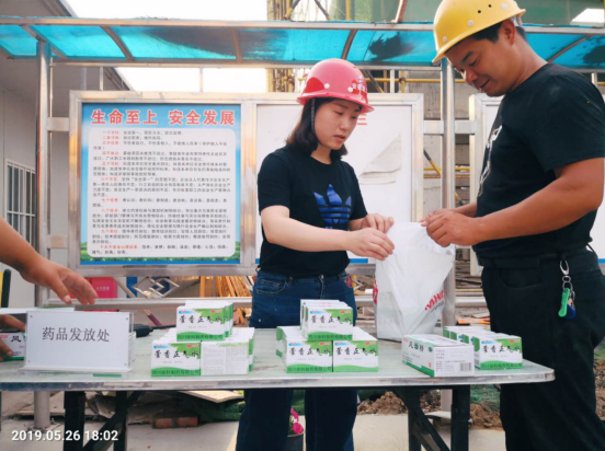 在施工現(xiàn)場,黨支部書記鄭婭代表項(xiàng)目部向一線班組人員送去防暑降溫的藿香正氣水、風(fēng)油精等藥品,并囑咐他們一定要做好工人健康、安全防護(hù)工作,合理安排工序和工作量,合理調(diào)整工人作息時(shí)間,盡可能避開高溫時(shí)段,在保證安全的前提下,圓滿完成各項(xiàng)工作任務(wù)。