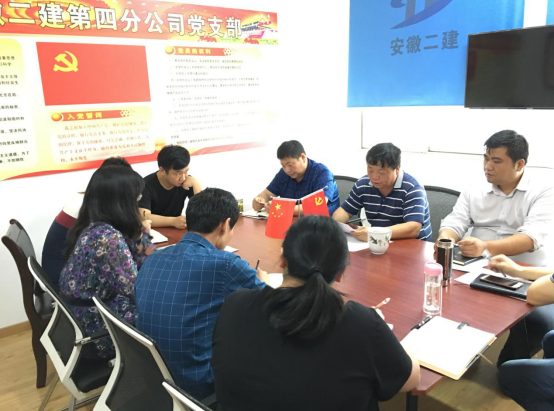 2019年5月27日上午,四分公司黨支部開展了“黨員活動日”活動,集中學(xué)習(xí)了建工控股黨委關(guān)于持續(xù)深入扎實學(xué)好用好黨章的文件,并組織黨員對照黨章查擺問題,機關(guān)和合肥項目部黨員參加學(xué)習(xí),黨支部書記董建民主持活動。