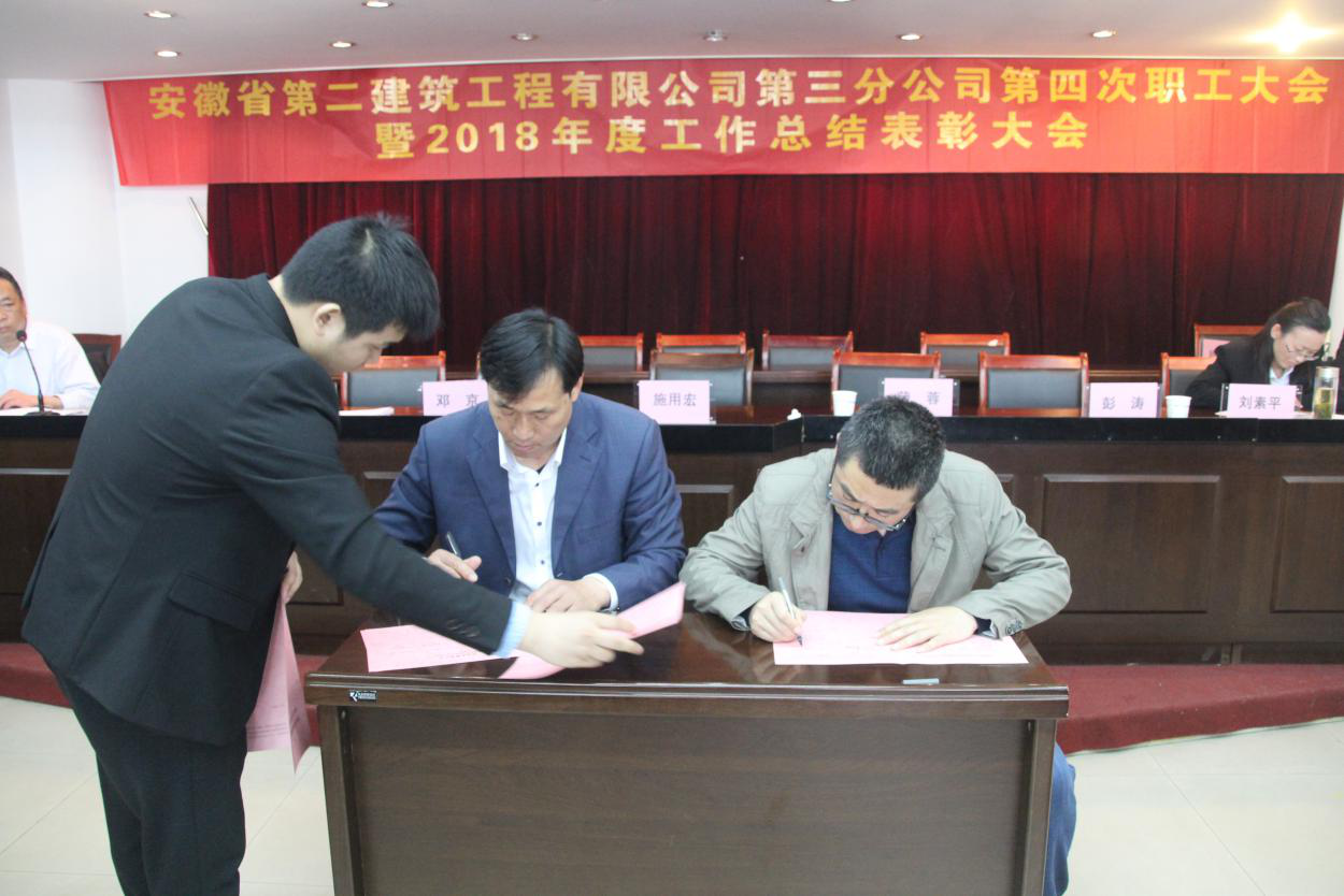 會上,公司黨委工作部對分公司領(lǐng)導(dǎo)班子及班子成員進(jìn)行民主測評,對后備干部進(jìn)行民主推薦;馬福才經(jīng)理和各項目經(jīng)理簽訂《目標(biāo)責(zé)任狀》、《勞動競賽責(zé)任狀》,為各責(zé)任主體完成全年指標(biāo)下達(dá)了“任務(wù)書”、確立了考核依據(jù);對過去一年在各自崗位上作出突出貢獻(xiàn)的先進(jìn)科室、項目及個人進(jìn)行表彰,更好地發(fā)揮了榜樣引領(lǐng)作用,促進(jìn)形成崇尚先進(jìn)、學(xué)習(xí)先進(jìn)、爭當(dāng)先進(jìn)的良好氛圍。