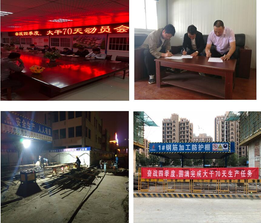 參賽項目已全面進入競賽狀態(tài),宣傳橫幅隨處可見,大干氛圍濃厚。分公司要求各項目部在保證質(zhì)量、安全的前提下,加班加點,克服困難,為實現(xiàn)“大干七十天”達到預(yù)定目標而不斷努力!