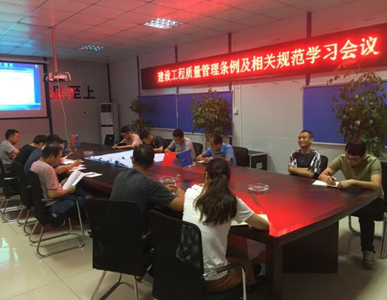 9月2日,項目在施工現場及辦公室醒目位置懸掛橫幅,在技術負責人的帶領下學習了相關法律、法規(guī)、規(guī)范,形成了濃厚的活動氛圍,強化了質量管理工作。項目部認真組織開展工程質量專項自查工作,加強質量管理控制和責任落實,強化質量管控意識,明確項目質量管理的重點與方向,使質量意識滲透到每一位員工心中。