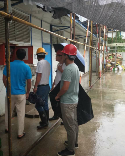 一是停止一切施工作業(yè),立即對施工現(xiàn)場的作業(yè)工人進行全部撤離,并將活動板房內的人員全部疏散,同時和勞務班組核實撤離情況。二是組織項目部管理人員對施工現(xiàn)場的機械設備、臨時用電、安全防護棚、排水系統(tǒng)等和生活區(qū)活動板房進行全面隱患排查,立刻采取有效的防范措施,確保工地安全。三是密切監(jiān)視臺風動態(tài),安排值班人員處置突發(fā)情況。