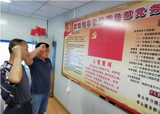 7月1日上午,項目部兩位黨員緊握右拳,面向鮮紅黨旗,重溫入黨誓詞?;仡櫲朦h宣誓時的莊嚴承諾和堅定決心,增強黨性意識,以更加飽滿的熱情發(fā)揮共產(chǎn)黨員的先鋒模范作用,永葆共產(chǎn)黨的政治本色。項目部19名成員抒寫了“我的承諾”,將一腔熱血鐫刻在紅色信紙上,并莊嚴鄭重的張貼上了宣傳欄,接受同志監(jiān)督,時刻提醒自己。不忘初心,立足崗位,提質(zhì)降本增效,以實際行動向七•一獻禮。