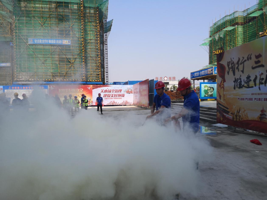 啟動儀式上,一分公司副經(jīng)理崔俊對本次安全生產(chǎn)月活動主題、活動主要內(nèi)容進行了宣貫,并對后期安全生產(chǎn)工作進行安排部署,隨后在安全負責人的帶領(lǐng)下莊嚴宣誓,并有序地在宣誓標語橫幅上簽名。項目人員還觀摩學習了滅火器的正確使用方法以及對因高空墜物受傷人員的緊急處理演示。
