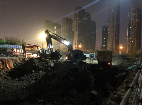 一年之季在于春。為確保楓林源筑直屬項目2018年生產(chǎn)工作開好頭、起好步。2月23日,年味依在,項目部積極組織開展復(fù)工工作,消除節(jié)后綜合癥,以飽滿的精神投入到緊張而有序的工作中。經(jīng)過項目部統(tǒng)籌安排,2月25日上午,施工現(xiàn)場5臺大型挖掘機,30輛自卸車,進行7#、12#樓土方開挖,9#樓二層墻柱鋼筋綁扎也在有條不紊進行中,施工現(xiàn)場人頭攢動,機械轟鳴,標(biāo)志著節(jié)后復(fù)工已全面啟動。