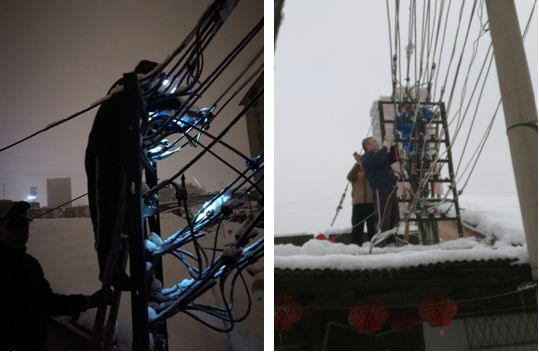 1月4日、5日,合肥地區(qū)普降暴雪,致使公司大院、分公司各生活基地多處老、舊平房100多戶遭受暴雪災(zāi)襲擊,造成樹枝斷裂壓在房頂上,危及職工住戶生命安全。路口路段出現(xiàn)大面積積雪堆積,交通堵塞,影響居民正常生活出行。面對緊急災(zāi)情,后勤綜合服務(wù)部一是立即成立了除雪保暢、維修應(yīng)急處置小分隊,合理分工,各負其責(zé)。分赴公司大院、二、四分公司生活基地,冒著雨雪搶修高壓電網(wǎng)短路、水管爆裂等災(zāi)情;二是安排人員張?zhí)┭┨鞖庾龊美吓f房屋、人身安全緊急通知的告示,防患于未然,安全為天;三是與安裝分公司協(xié)助,抽調(diào)專業(yè)電工人員幫助消除電網(wǎng)隱患,確保住戶用電安全;四是針對公司大院31棟北側(cè)一棵高13米,直徑0.7米的大樹被雪壓倒塌,造成一墻之隔的安紡2村住宅樓第二單元部分損壞和居住安全隱患,后勤及時聯(lián)系專業(yè)樹木砍伐隊伍,對樹木進行分段切割,消除了倒塌樹木對住戶造成的安全隱患,確保了住戶的人身和財產(chǎn)安全。