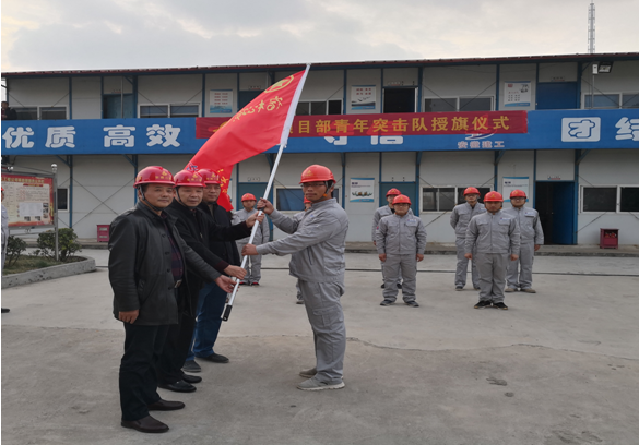 11月20日,宿松項目部結(jié)合公司“大干60天”勞動競賽活動熱潮,在公司工會、團委的支持下組建了安徽二建首支“青年突擊隊”,公司工會主席李林、副主席蒯家江、分公司支部書記陳習(xí)武應(yīng)邀參加了“青年突擊隊”授旗儀式并進行授旗。