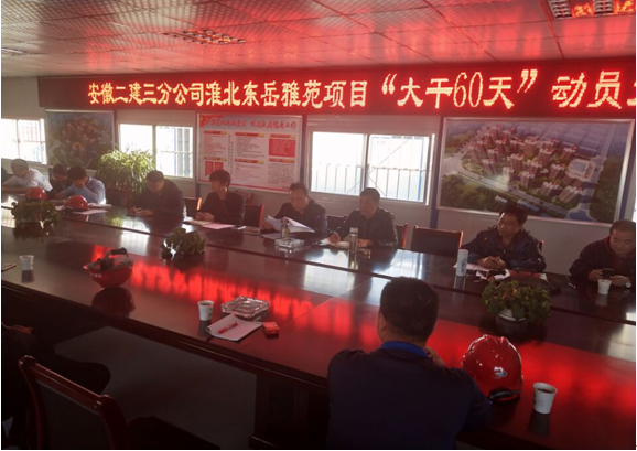 近日,三分公司積極落實《關于組織開展“大干六十天”勞動競賽的通知》二建【2017】130號文,成立了以馬福才副經(jīng)理為組長,其他班子成員為副組長,各科室負責人、項目經(jīng)理為成員的勞動競賽領導小組。邀請公司副總經(jīng)理葉和永參加分公司生產(chǎn)例會,會上宣讀了公司下達的通知及各項目任務指標,強調(diào)此次勞動競賽的重要意義。會議對各在建項目的生產(chǎn)任務進行梳理、細化,明確了難點和重點,要求各項目特別是項目經(jīng)理要提高認識、充分調(diào)動項目全員的積極性,倒排計劃、精心組織、正視困難、迎難而上,迅速掀起項目施工生產(chǎn)大干的熱潮。要求各職能科室加大宣傳力度,多深入項目,對各項目全面、順利完成公司下達的任務指標而給與幫助、指導、監(jiān)督、協(xié)調(diào)、服務。會上強調(diào),分公司機關、各項目一定要發(fā)揮共產(chǎn)黨員的先鋒模范作用,青年突擊隊的引領作用,帶領全員埋頭苦干,以更加飽滿的熱情、更加有效的搶工措施、更加扎實的工作作風來迎接本次勞動競賽。
