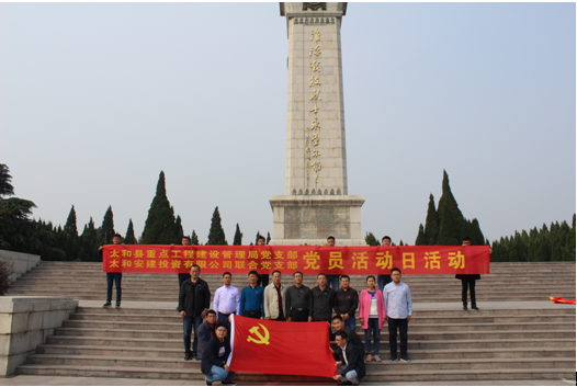 紅色之旅途中,太和安建投資有限公司聯(lián)合黨支部書記高偉發(fā)起了黨員和入黨積極分子共同參與的組織生活會,從思想、黨性認識上對黨員和入黨積極分子進行了重大洗禮。太和縣委辦副主任、太和縣重點局苗玉勇給本次活動致辭,并給紀念碑獻花藍,接著薄局帶領我們重溫入黨誓詞,積極學習黨的歷史、黨的知識。