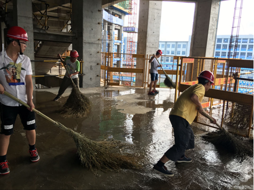 團員青年利用傍晚高溫天氣減弱時段,使用大掃帚、灑水管、拖把、防塵布等物品,在工地安全入口、樓層內(nèi)、施工環(huán)形路上進行除塵行動,每一名青年團員滿懷熱情,積極響應,你灑水我拖地,你接水管我蓋布,干勁十足,展現(xiàn)了生物島一期項目青年團員的良好形象。
