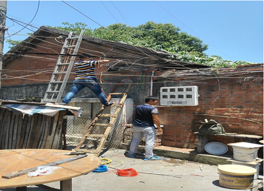 烈日炎炎,酷熱難耐,現(xiàn)場維修人員衣物早已被汗水浸透,但是為了確保居民能夠及時用上電,所有人員沒有絲毫懈怠。終于在下午2點將故障全部處理完畢。送電后,維修人員對每戶進行了全面檢查,確保一切正常后,方才離開現(xiàn)場。生活區(qū)里所有住戶對二建后勤綜合服務(wù)部對處理問題認真負責的態(tài)度給予了極大的好評。