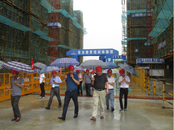 為了更好的開(kāi)展“安全月”活動(dòng),推進(jìn)項(xiàng)目管理水平的提高,提升安全文明施工形象,加大質(zhì)量管控,6月30日,安徽二建三分公司在安建·龍溪觀邸項(xiàng)目舉辦了內(nèi)部觀摩會(huì)及安全知識(shí)競(jìng)賽活動(dòng)。分公司支部書(shū)記陳習(xí)武、分管生產(chǎn)領(lǐng)導(dǎo)、安全部門負(fù)責(zé)人以及分公司的各項(xiàng)目經(jīng)理、生產(chǎn)經(jīng)理、技術(shù)負(fù)責(zé)人、安全員等近50人冒雨參加此次活動(dòng)。