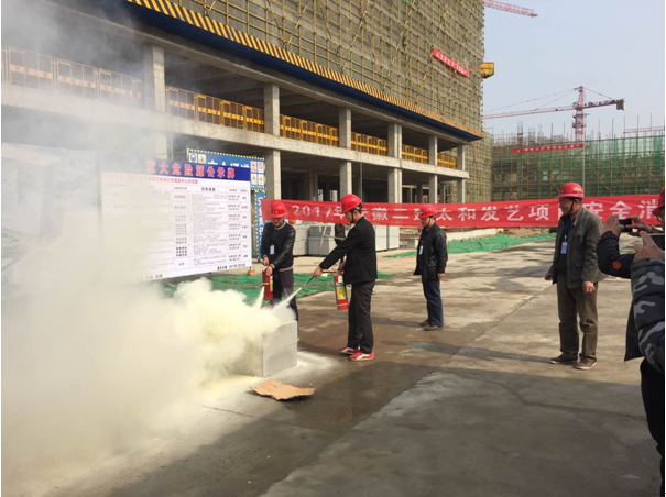 本次演練假想點為鋼筋制作電焊焊接操作區(qū)工人的疏忽,導致附近一些易燃物品著火。演練中操作人員以最快速度拿取滅火器撲滅小火,但火勢在瞬間已無法控制,他立即電話通知電焊班組長,并通知項目應急分隊消防人員。應急分隊義務消防隊員到位后立即打開滅火器,進行滅火。十分鐘后火勢得到控制。