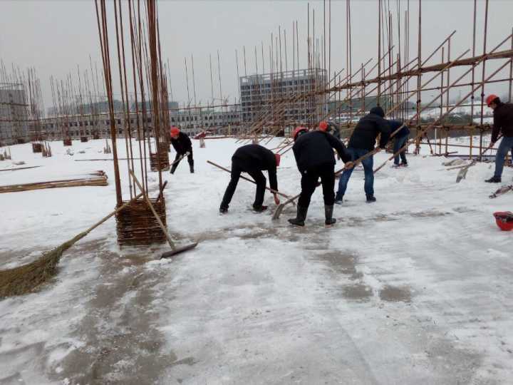 皚皚白雪覆蓋著皖北大地,凜冽的北風吹在面頰上非常刺痛,全體員工發(fā)揚安徽二建人“特別能戰(zhàn)斗、特別能吃苦”的精神,與風雪嚴寒對抗,他們迅速將影響施工的積雪清掃完畢,并科學調(diào)度、合理鋪排,施工緊張有序,項目建設進度不斷推進。