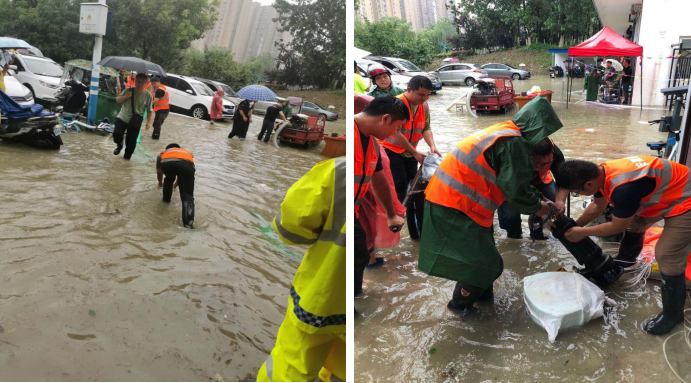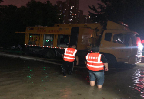 7月18日,合肥遭受77年一遇單日最大降雨。藍(lán)天公寓和大興鎮(zhèn)興泰苑出現(xiàn)內(nèi)澇,情況緊急,人民群眾生命財產(chǎn)安全遭受威脅,汛情就是戰(zhàn)斗令,二分公司接到指令,馬上組建30余人的抗洪突擊隊(duì),緊急調(diào)運(yùn)大功率水泵2臺,配電箱2個,80米電線電纜,300米水管等防汛物資,20分鐘極速趕到抗洪前線?,F(xiàn)場有的架設(shè)水泵、有的鋪設(shè)電纜、有的配合抽水排澇,分工明確、爭分奪秒。經(jīng)過數(shù)小時的緊急救援,至凌晨,災(zāi)情得到有效控制。奮戰(zhàn)了8個小時的志愿者們才撤出前線。