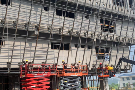 目前,宿州三館一院一中心項目已全面進入到裝飾裝修階段,按照下半年生產(chǎn)目標,項目部針對室內(nèi)裝修、室外鋪裝、幕墻安裝、鋼網(wǎng)架等工作內(nèi)容細化階段目標和責任人,每晚組織技術(shù)科、施工科與裝修班組、安裝班組召開生產(chǎn)進度分析會,對當天問題及時溝通和解決,保證不耽誤生產(chǎn)進度。